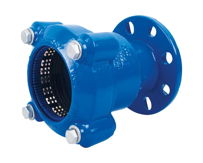 Adaptateur bride verrouillé ACS large plage série 2509. DN 50-300. Autobuté pour tubes PE, PVC, Fonte, Acier. PN16. Fonte époxy, ACS. Stock France.