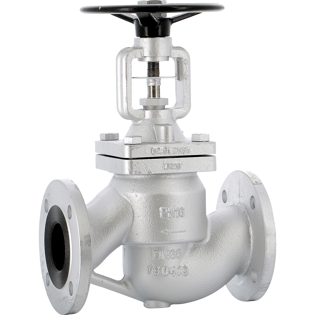 Robinet à soupape fonte soufflet inox 476. DN15, PN25, soufflet inox, clapet inox, -10/+350°C, vapeur max 10 bar, brides RF, garantie 2 ans.